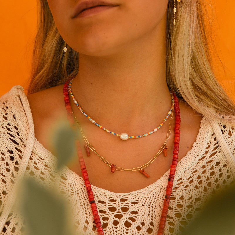 ¡Perfecto para combinarlo con más collares de nuestra colección! Tiene varias larguras. Fabricado en plata de ley 925. Cuencas de resina de colores.