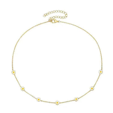 Collar de margaritas de moda. Fabricado en plata de 925 mls y baño en oro de 18 kts. Acabado en esmalte blanco y amarillo.