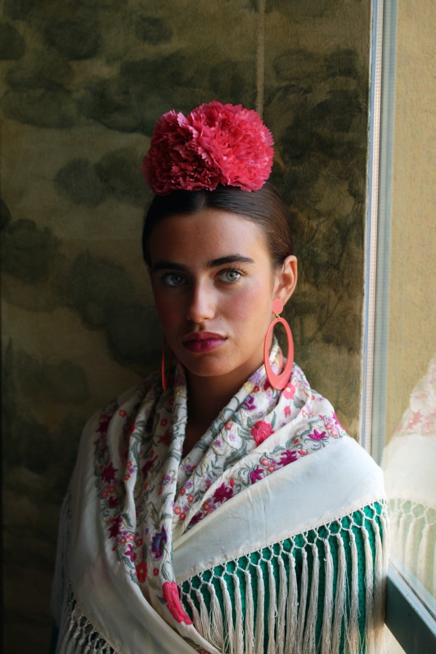Clavel doble color teja. Con sus pétalos en un tono terracota, aporta un toque elegante y con carácter a cualquier traje flamenco. Perfecto para quienes buscan un detalle único y lleno de personalidad, este clavel añade un aire acogedor y distintivo a tu look.