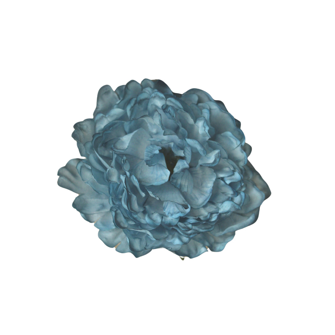 Peonía Flor de color azul jeans es moderna y sofisticada. Con sus pétalos amplios en un hermoso tono azul, le da un toque único y lleno de estilo a cualquier traje flamenco. Ideal para darle un toque especial y lleno de carácter a tu estilo.