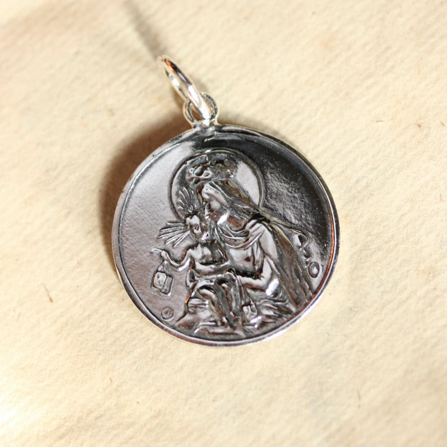 Medalla Virgen del Carmen. Fabricada en Plata de Ley de 925mls. Mide 23 mm de diámetro.