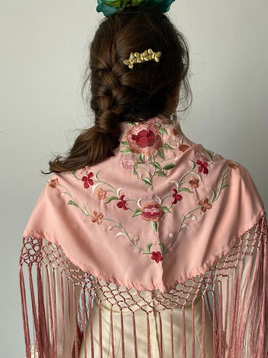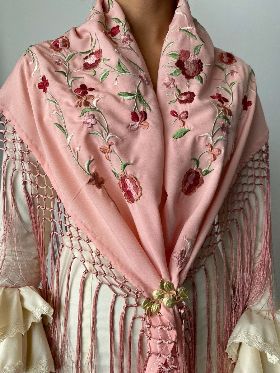 El mantón Begoña forma parte de la nueva colección de mantones de flamenca Doña Sol. Un mantón con un tejido crepé muy especial y favorecedor con bordados de colores que combinan con gran variedad de tejidos.