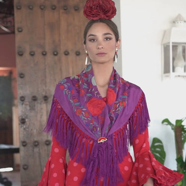 Mantón Lola Berenjena Flor Roja