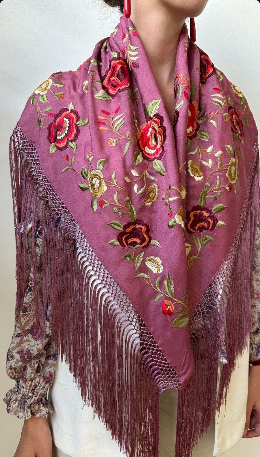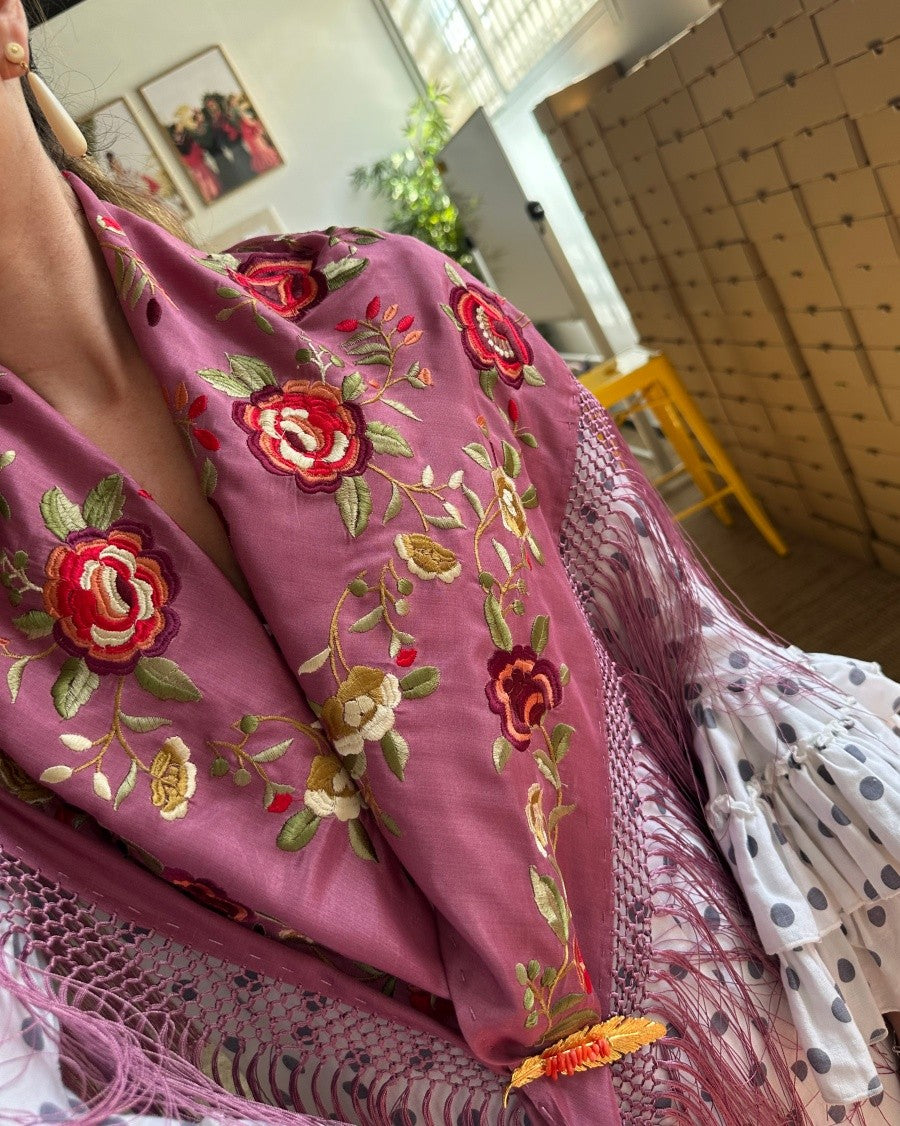 Mantón de flamenca con dibujo antiguo. Ideal para tus trajes de flamenca y de invitada. Una joya que pasará de generación en generación.