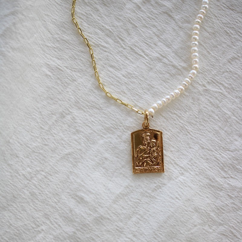 Fabricado en plata de 925 mls y baño en oro de 18kts. Si lo desea puede añadir la cadena pearl en oro o en plata.