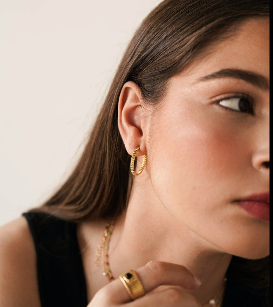 Los pendientes Paulette forman parte de la colección de aros Doña Sol. Un pendiente cómodo y atemporal que nunca pasa de moda por su diseño y que podrás llevar todos los días. No pesan nada. Fabricados en plata de Ley de 925 mls.y chapados en oro de 18 kts. Sin duda un imprescindible en tu joyero.