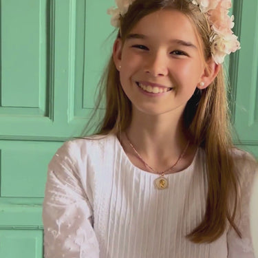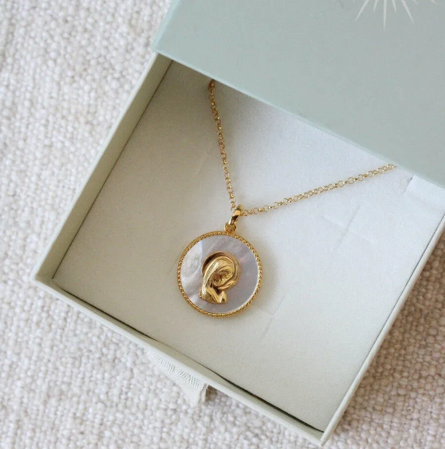 La medalla de la Virgen Niña representa dulzura, pureza y humildad. Este modelo de la virgen niña sobre nácar es la mejor manera de ir siempre protegida por la Virgen María. Puedes añadir una cadena de plata de 40 cm o de 50 cm o combinarla con cadenas de minerales de colores.