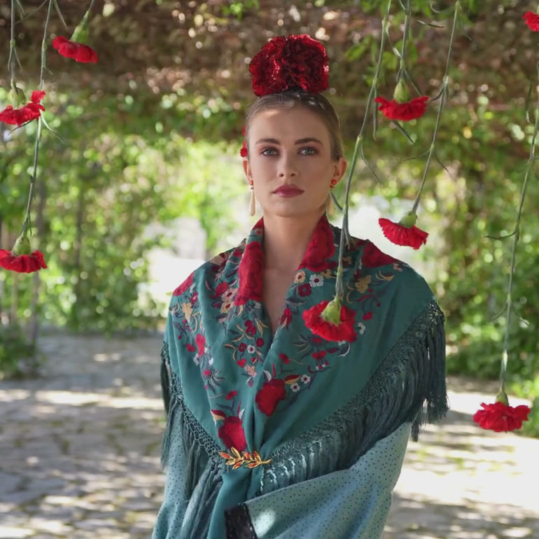 Mantón Rocio Berenjena Bordado Negro €159,99 /- Bisutería