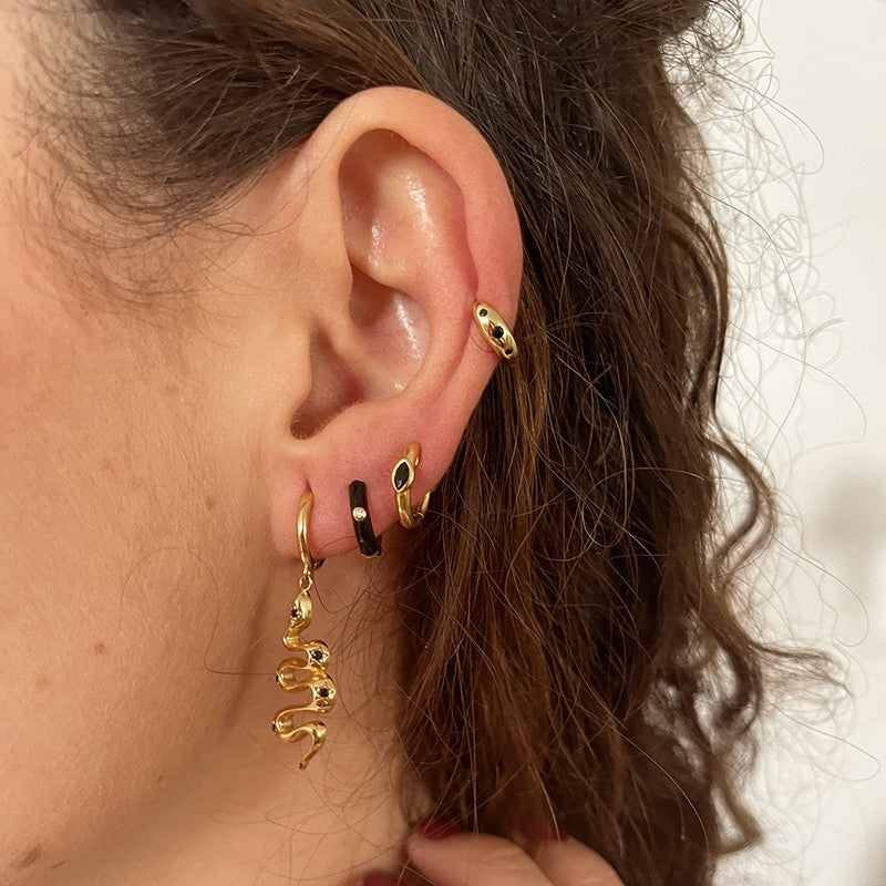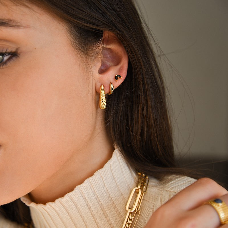 Los pendientes Pía Black están fabricados en plata de 925 mls y un baño en oro de 18 kts.