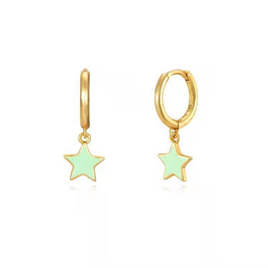 Los pendientes aro Estrella están fabricados en plata de 925 mls y tienen un baño de oro de 18 kts. Pendientes esmaltados en color verdeagua.