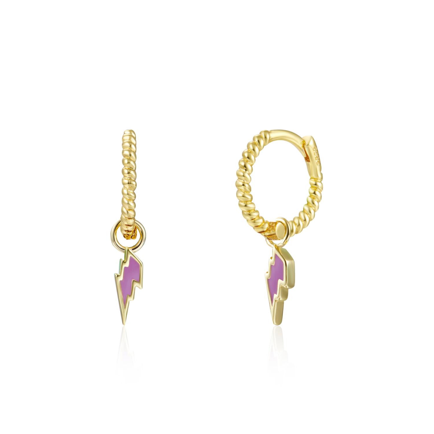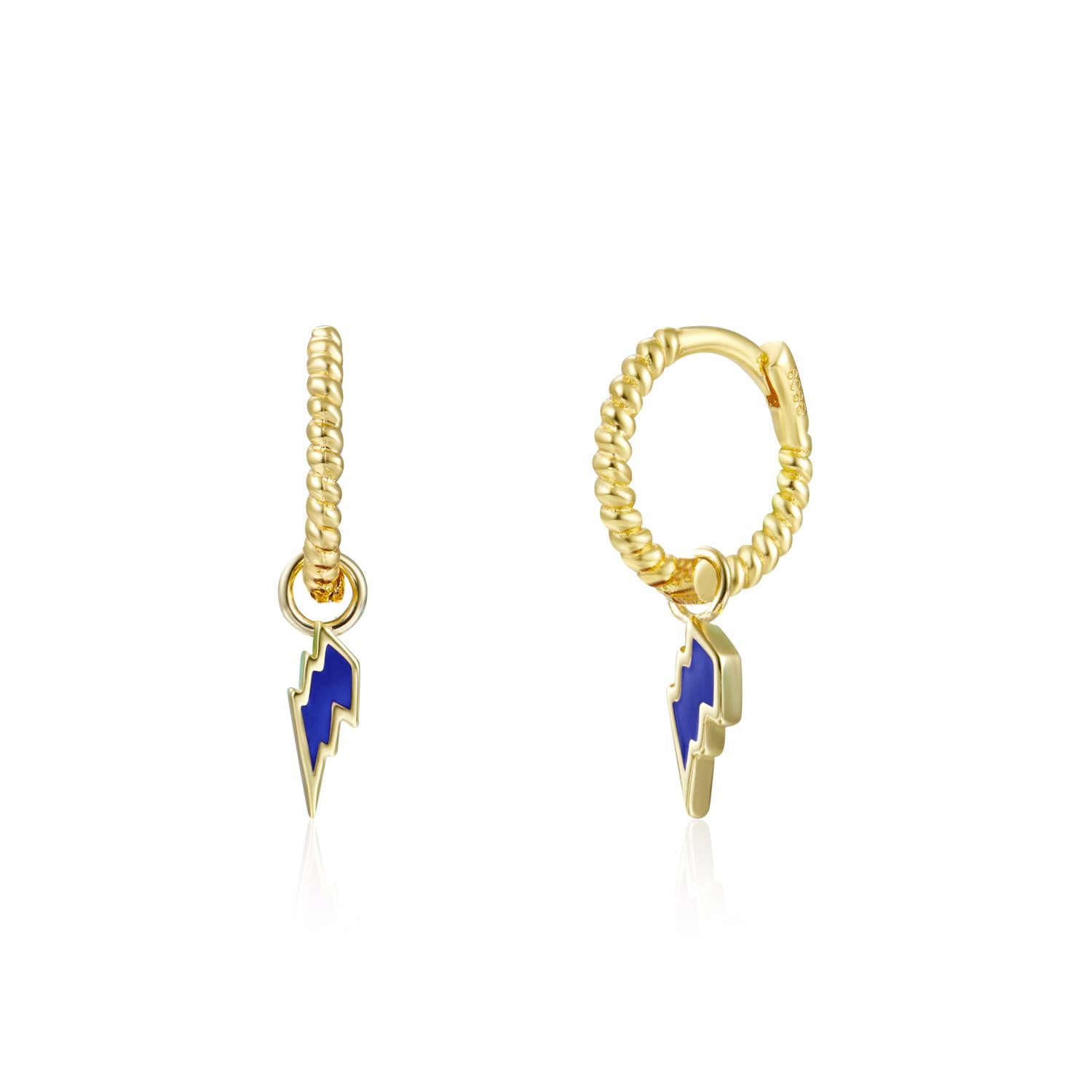 Los pendientes Gallon Rayito forman parte de la nueva colección de aros y charms. Fabricados en plata de 925 mls con un chapado en oro de 18 kts y un rayito en esmaltados azul, negro o malva.