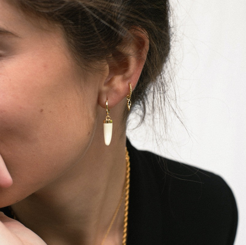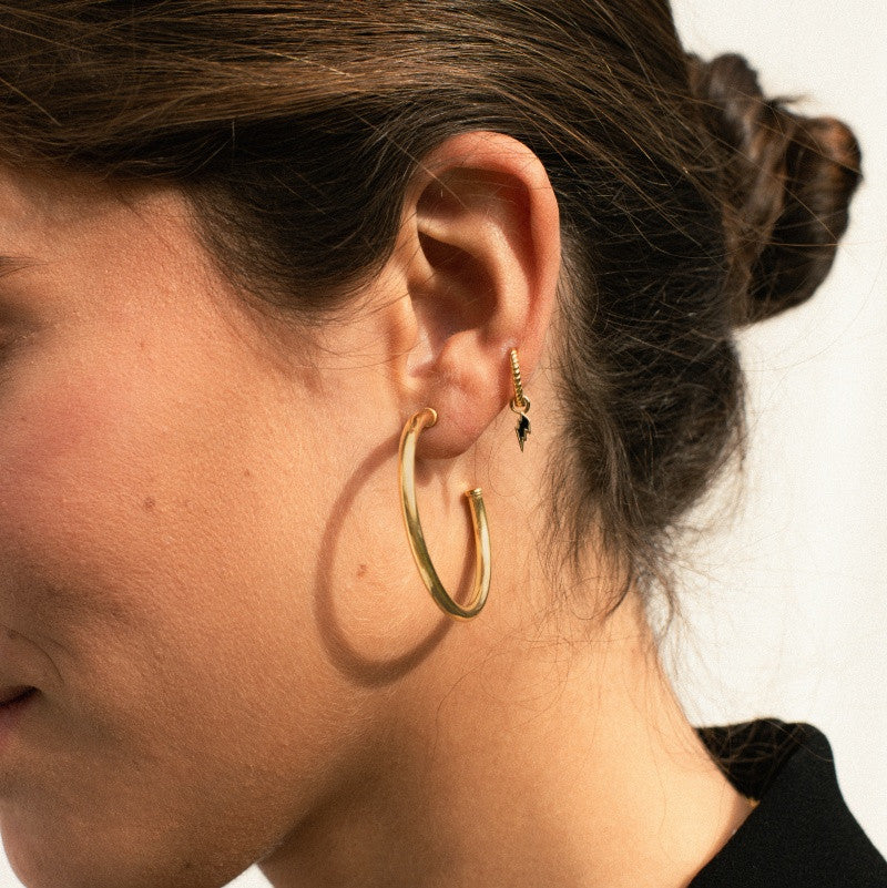Pendientes pequeños con muchas combinaciones porque puedes llevar el aro con o sin el charm. Están formados por un arito rizado de 11 mm de diámetro y un charm 10 mm. No pesan nada y puedes comprar el par o la unidad.