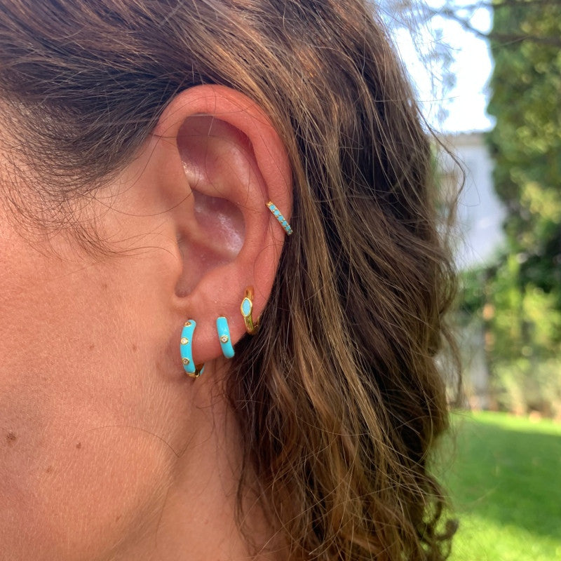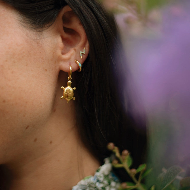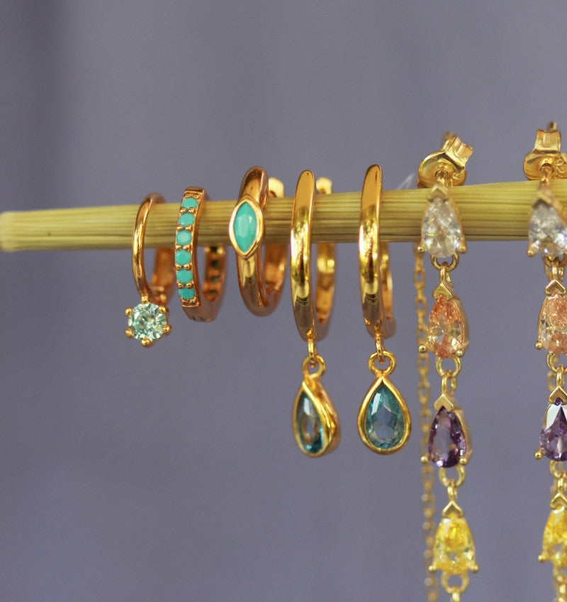 Los pendientes Zire forman parte de la nueva colección de pendientes de piedra. Están fabricados en plata de 925 mls y un baño de oro de 18 kts.