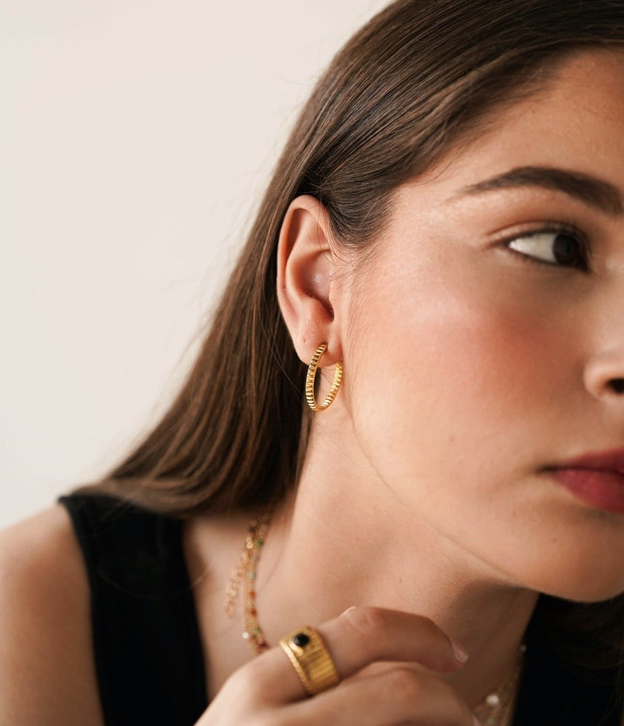 Los pendientes Paulette forman parte de la colección de aros Doña Sol. Un pendiente cómodo y atemporal que nunca pasa de moda por su diseño y que podrás llevar todos los días. Fabricados en plata de Ley de 925 mls.y chapados en oro de 18 kts. Sin duda un imprescindible en tu joyero.