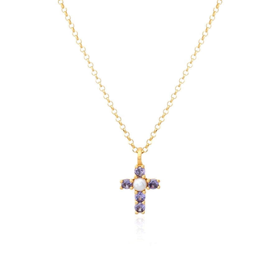 Colgante Cruz Perlita Purple