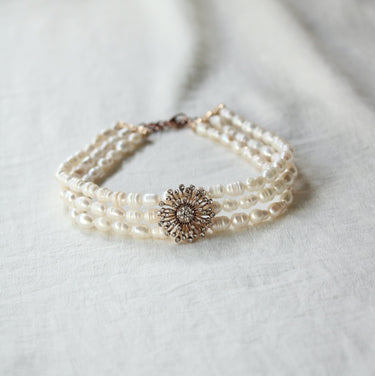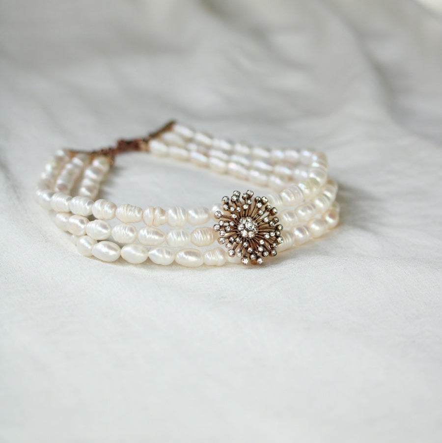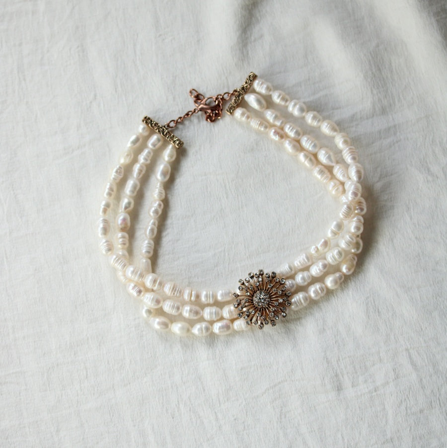 Gargantilla de perlas cultivadas con broche vintage. Gargantilla única y exclusiva protagonista de tus looks más especiales. Fabricado a mano con perlas cultivadas seleccionadas. No habrá otra igual.