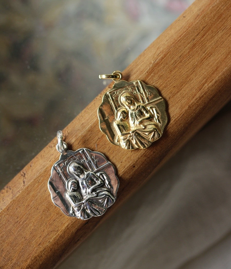 La medalla de Santa Ana es lo más especial que puede llevar una novia el día de su boda. Está fabricada en plata de 925 mls chapada en Oro de 18k .