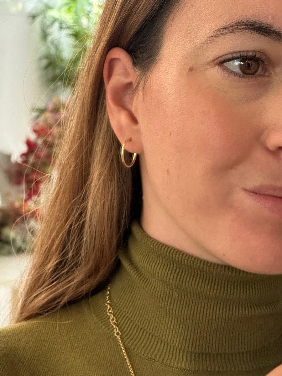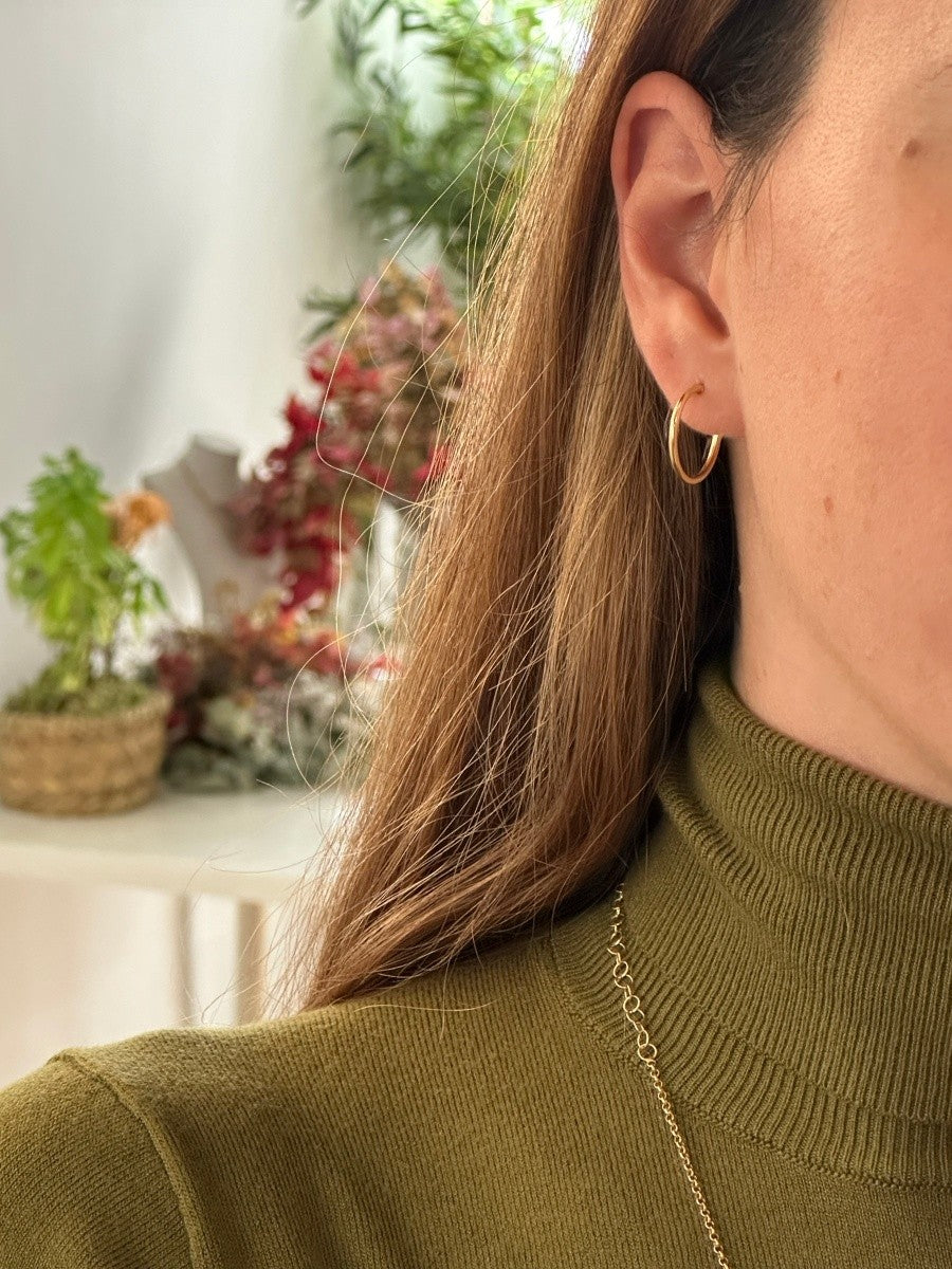 Los pendientes Basics M son los pendientes de aro más sencillos del mundo pero los que mas te vas a poner a partir de ahora. Gracias a su material de oro de 18 kts podrás llevar estos aritos siempre.