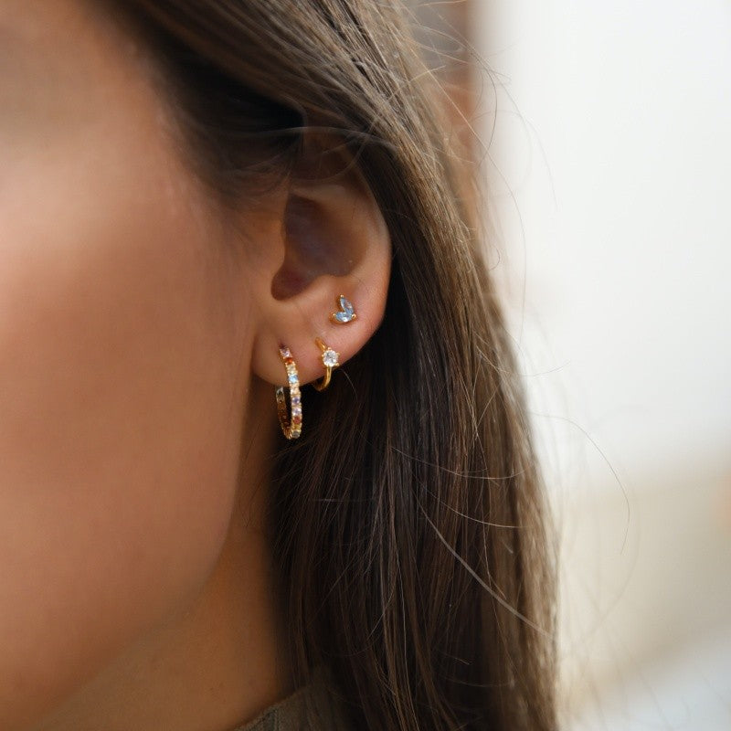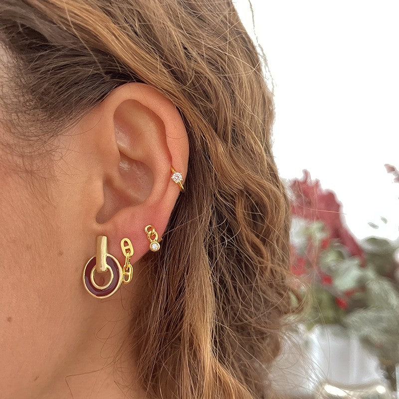 Pendientes mini de 7.5 mm de diámetro interior y 11.5 mm de diámetro exterior. Formados por una circonita de 3 mm. Muy cómodos porque tienen cierre de clip. Perfectos para combinarlos con más pendientes Doña Sol. Puedes comprar el par o la unidad.